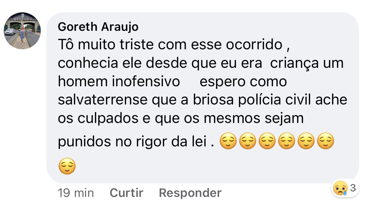 Nas redes sociais algumas pessoas manifestaram a indignação e lamentaram a morte: