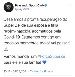 Em uma rede social o Paysandu anunciou que o ex-jogador e ídolo do Paysandu Zé Augusto, foi diagnosticado com covid-19.