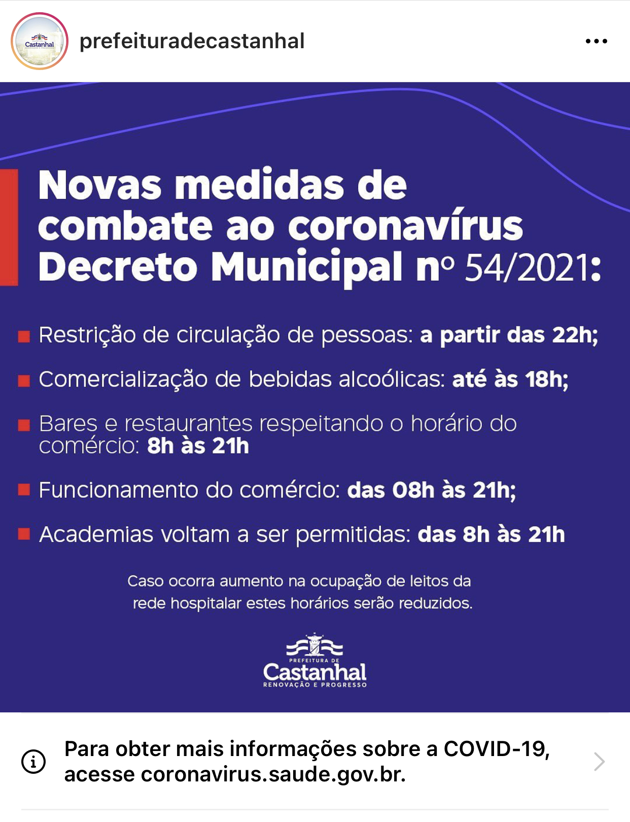 Na noite desta quinta-feira, 11, a prefeitura de Castanhal divulgou um novo decreto que contraria o decreto estadual.